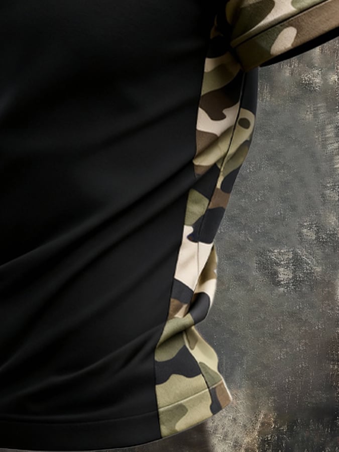 Men's Retro Patriot Camouflage Patchwork T-shirt